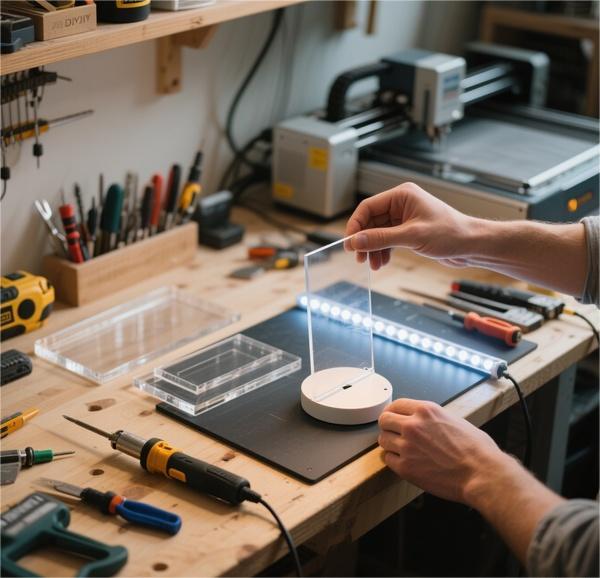 LED strips work excellently for edge-lit designs, while individual LED modules suit point-source applications. Choose LEDs with appropriate color temperature for your intended use - warm white (2700K-3000K) for ambient lighting, cool white (4000K-5000K) for task lighting.